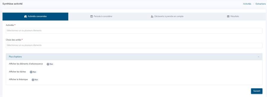 Pour créer une nouvelle extraction, cliquez sur Réaliser une nouvelle extraction et sélectionnez “Synthèse activité” :