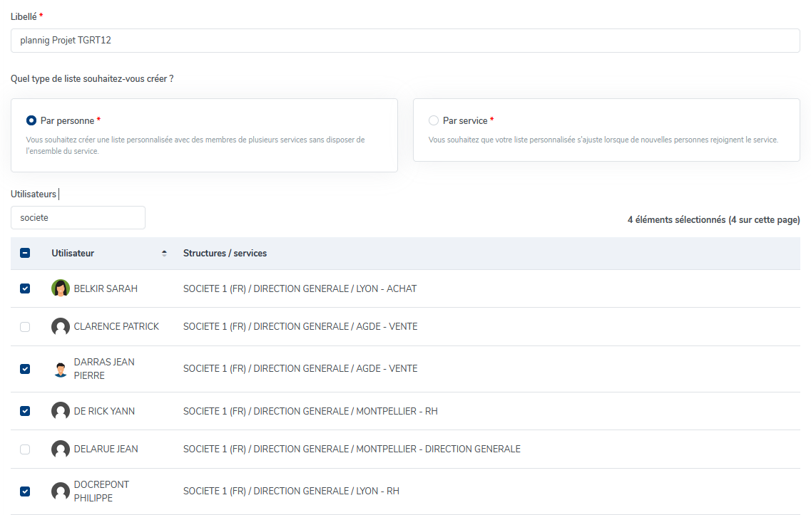 Vous avez la possibilité de créer des listes par personne en cochant chaque personne individuellement.