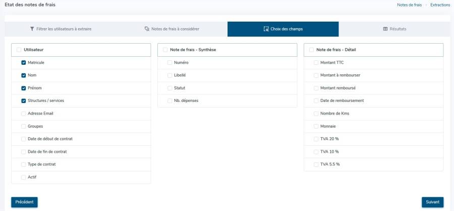 Rendez-vous sur l'écran de paramétrage : Notes de frais > Extractions