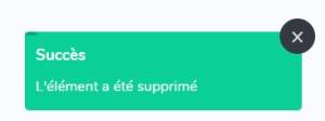 Une fois confirmé, un message en bas à droite de l'écran vous confirme le succès de la suppression :