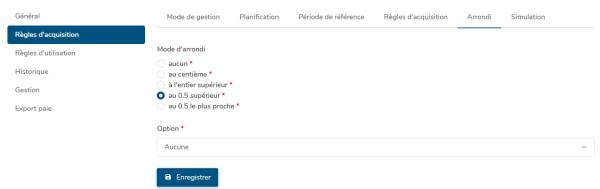 - Option : Choisissez entre aucune, arrondi au centième si l’acquisition n’est pas terminée ou arrondi au centième avant le dernier mois d’acquisition.