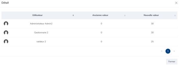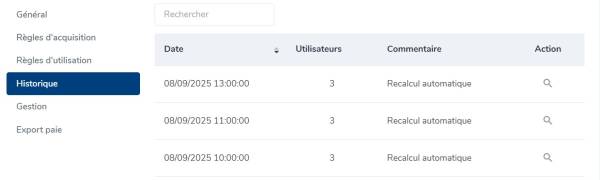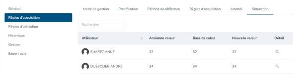 Un clic sur la loupe affiche le détail des utilisateurs pour lesquels un recalcul a été effectué :