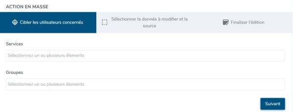 - Ciblez les utilisateurs concernés en renseignant le(s) service(s) et/ou le(s) groupe(s) concerné(s). Si aucun champ n'est rempli, alors l'action sera effective pour tous les utilisateurs :