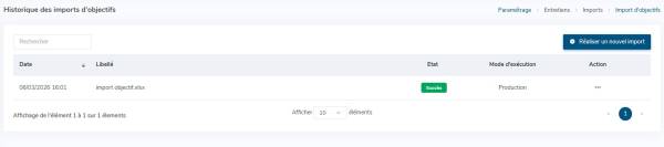 Une fois l'import effectué, vous visualisez de nouveau la page d'historique des imports :