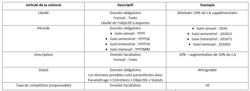 En tant que gestionnaire, vous pouvez importer des objectifs afin d’éviter aux responsables de les ressaisir manuellement.