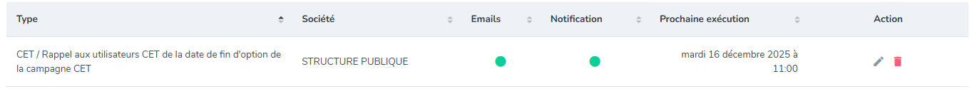Si jours avant fin de campagne=7, alors l'utilisateur sera notifié 7 jours avant la date de fin d'option de la campagne qu'il a jusqu'au JJ/MM/AAAA pour exercer son droit d'option sur ses jours CET.