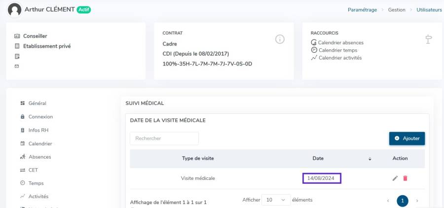 Ici, nous allons prendre comme Date celle de la visite médicale :