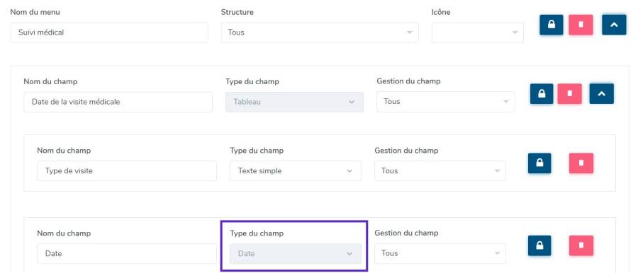 Le champ Date va extraire les libellés de la structure du dossier RH où la valeur date a été paramétrée.