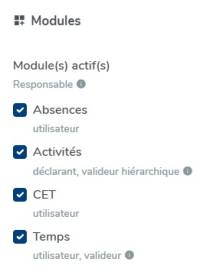 Dans la rubrique Général, vous visualisez les modules actifs :