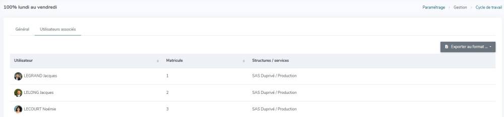 En tant que gestionnaire, vous avez la possibilité de visualiser rapidement les utilisateurs associés à un cycle de travail en affichant l'onglet directement dans le détail du cycle concerné.